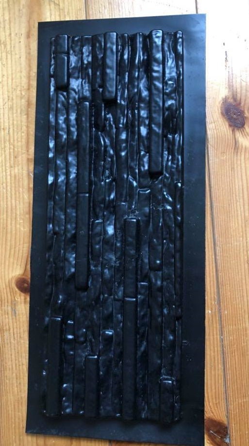A 36.5cm x 13cm wall covering can be poured into the mold. The molded form can be colored, either in the material or afterwards.